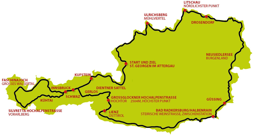 Sein Rennen beginnt am Dienstag, den 9.August 2016 um ca. 19 Uhr in St. Georgen am Attersee. Wenn alles planmäßig verläuft, dann sollte er nach ca. 93 Stunden wieder im Start/Ziel-Gelände ankommen. Ein besonders emotionaler Moment für den jungen Ötztaler ist immer die Fahrt über den Holzleitensattel. Vom Lechtal und über den Fernpass kommend ist er hier seiner Heimat am nächsten.