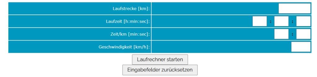 Klicken Sie auf „Berechnen“. Der Laufrechner ermittelt automatisch die fehlenden Werte: