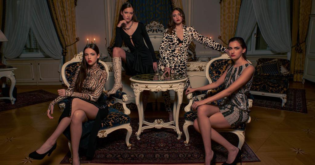 Abbildung: Vier Models von 1 st Place Models sind die Werbegesichter von Roberto Cavalli in Österreich: Alina Taschler und Linda Hiller (hinten), Ann-Kathrin Johannides und Leni Föger (vorne). © 1 st Place Models / Mike Lehner